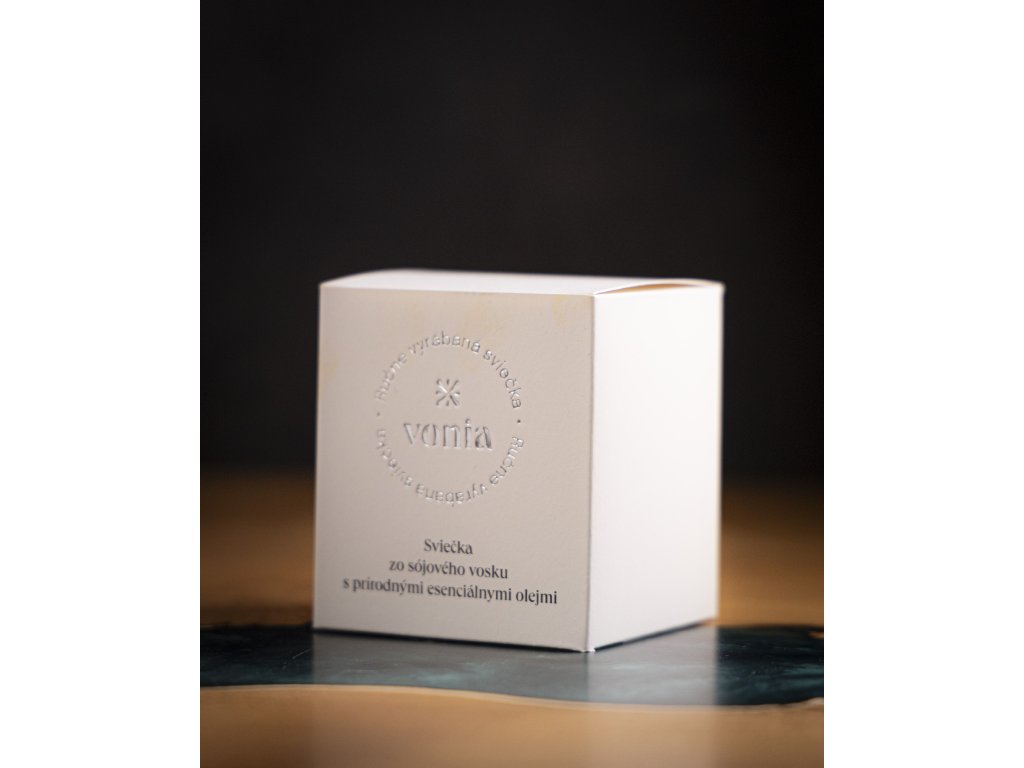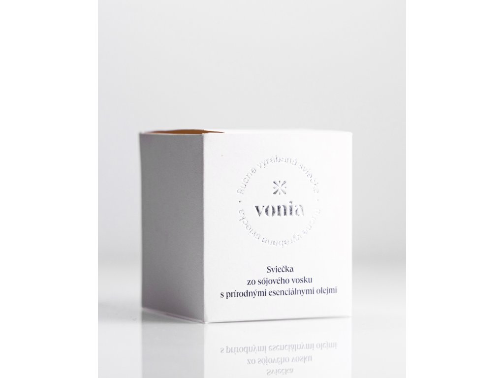 Darčekový box zdôrazňuje holistický prístup k vytvoreniu zdravého a harmonického životného prostredia. Umožňuje bezpečne a štýlovo prenášať a darovať sójové sviečky Vonia ako investíciu do kvality života a zdravia obdarovaného.