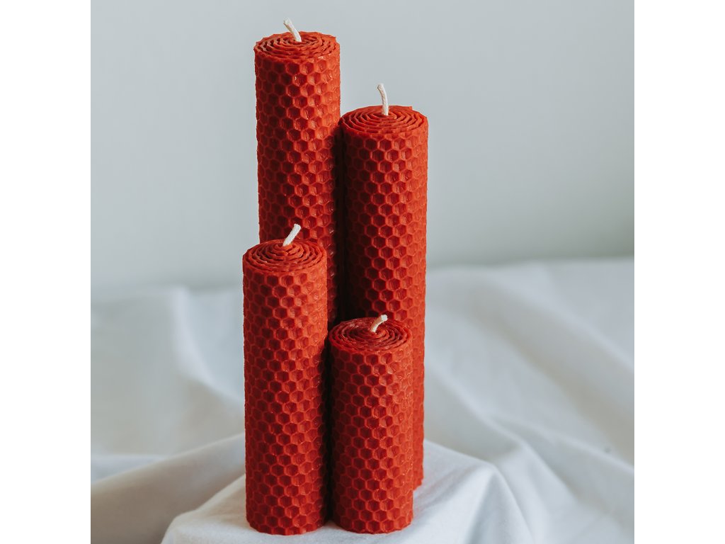 Adventné sviečky v krásnej červenej farbe z medzistienky sú ideálnym doplnkom na vytvorenie sviatočnej atmosféry vo vašom domove. Tento ručne robený adventný set prírodných sviečok z včelieho vosku obsahuje štyri sviečky rôznych veľkostí (180, 140, 100 a 60 mm) s priemerom 30 mm, ktoré sú perfektné na postupné zapálenie počas adventného obdobia.