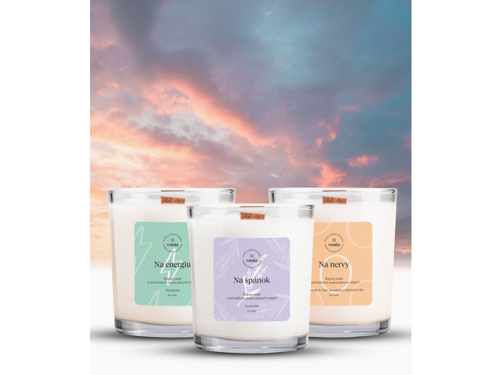 1. Sójová sviečka Na energiu (180 g) – S osviežujúcou vôňou eukalyptu, táto sviečka je ideálna na rána či pred športom. Povzbudzuje zmysly a uvoľňuje dýchacie cesty, čím dodáva energiu pre náročný deň. Je vyrobená zo sójového vosku, ktorý ponúka ekologickú alternatívu.
