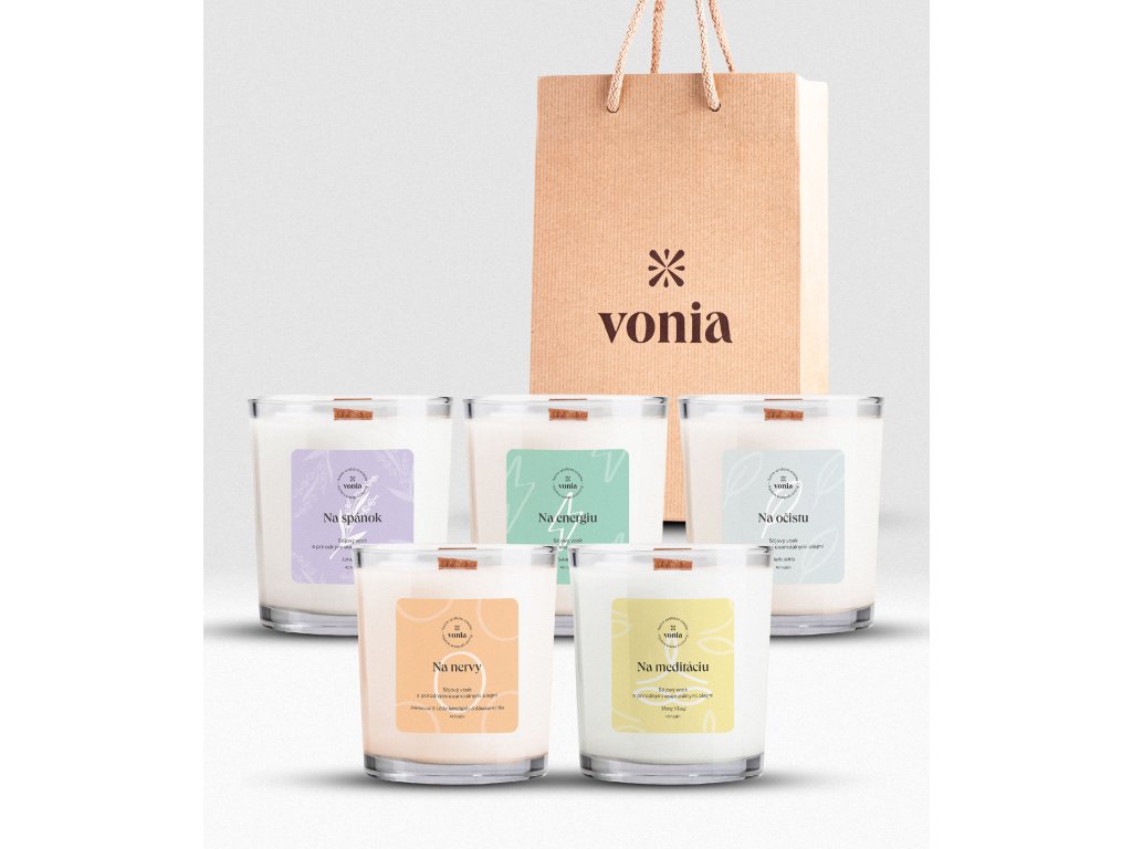 Darčekový set piatich terapeutických sviečok z prírodného sójového vosku, ktoré sú doplnené o špecifické vonné esencie prospešné pre telo aj myseľ. Zabalené v elegantnej darčekovej taške.
